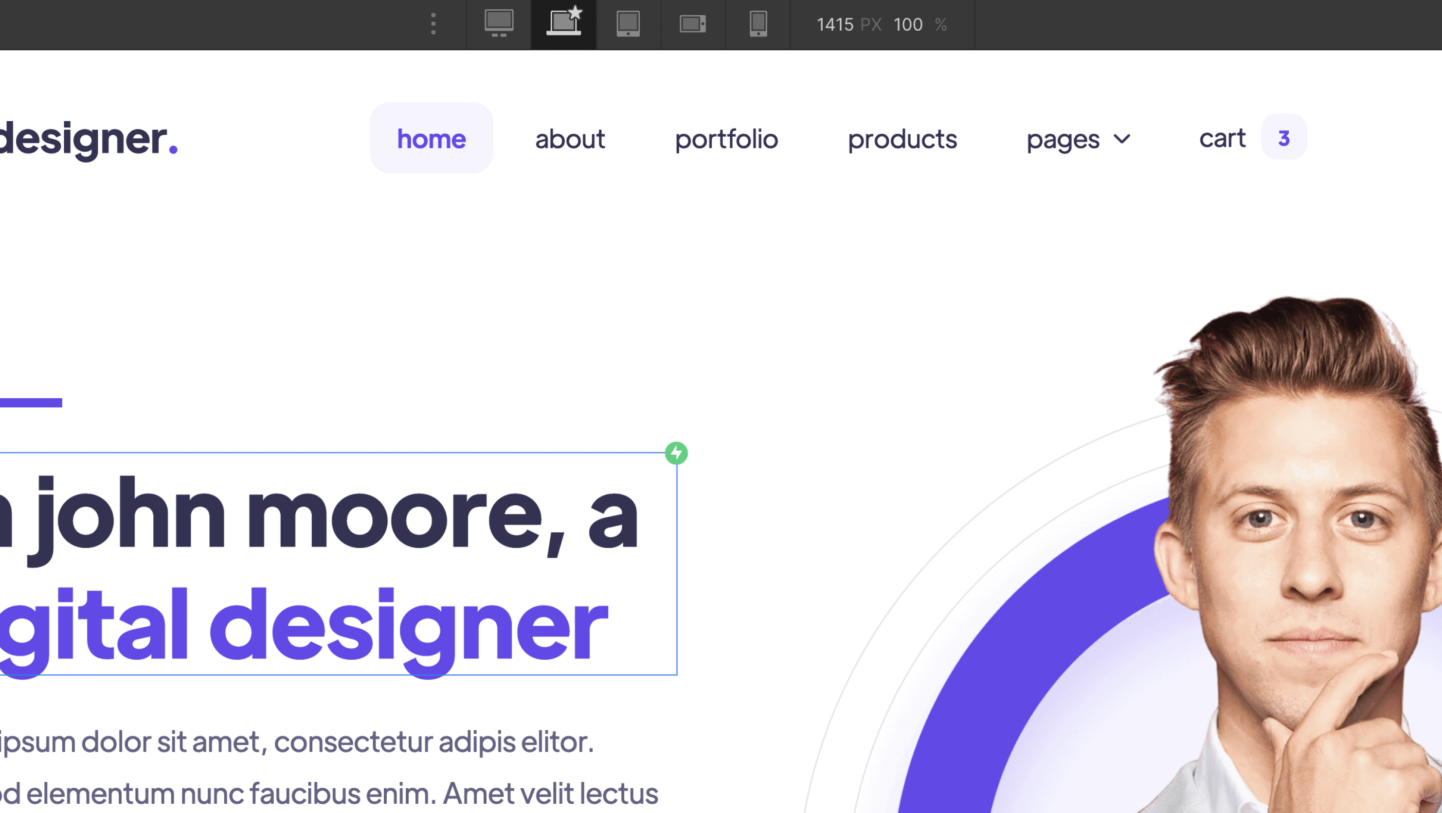Everytime you make a change (for example, you create a new section design), it's a good practice to go to your Viewport top navigation and see how it looks on Tablet and Mobile.